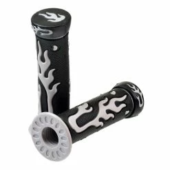 These are excellent grips; easy on the hands to hold, when installed they will adhere with tenacity, and they undeniably do look good. Monster Scooter Parts has these great flame grips available in your choice of four colors; blue, gray, red, or yellow.
